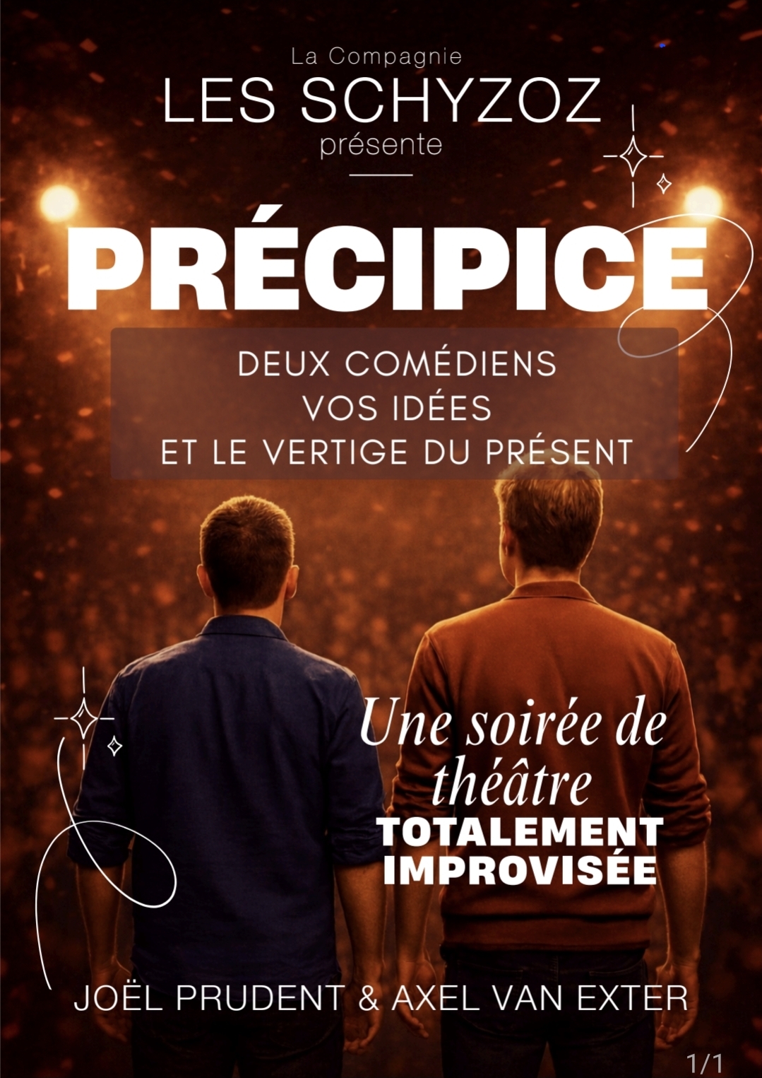 Et si, pour une fois, rien n’était prévu ? Pas de texte. Pas de décor figé. Pas d’histoire écrite à l’avance. Juste une scène, deux comédiens… et vous. Ce soir, Joël PRUDENT et Axel VAN EXTER s’avancent au bord du vide. Un espace où tout reste à inventer. Vos idées deviennent des mondes, vos mots...